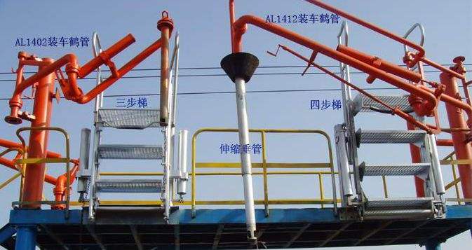 二、对于甲A类液体介质,例如丁二烯、液化气、二甲醚、液化乙烯、丙烯、丙烷、乙烷等,应采用顶部密闭带回气管线形式,鹤管型号一般为AL2543。